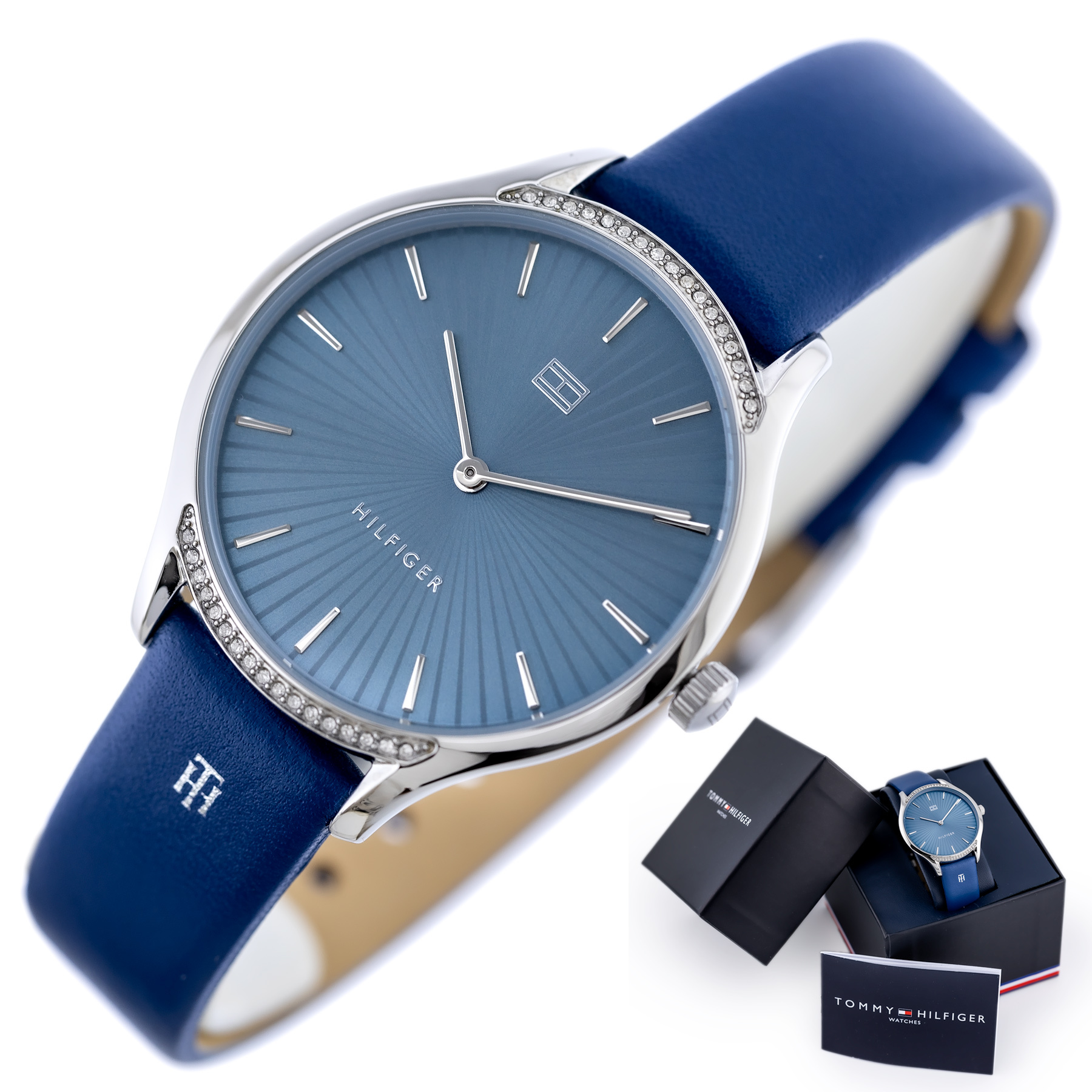Zegarek damski Tommy Hilfiger 1782213 to klasyczny, subtelny czasomierz na każdą okazję. Zegarek posiada kopertę ze stali szlachetnej z powłoką w kolorze srebrnym i skórzany pasek w kolorze niebieskim. Szkiełko mineralne zastosowane w zegarku jest odporne na pęknięcia oraz zarysowania.