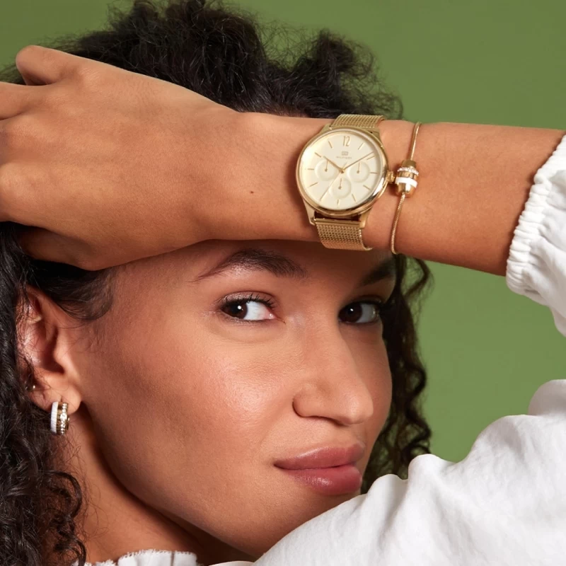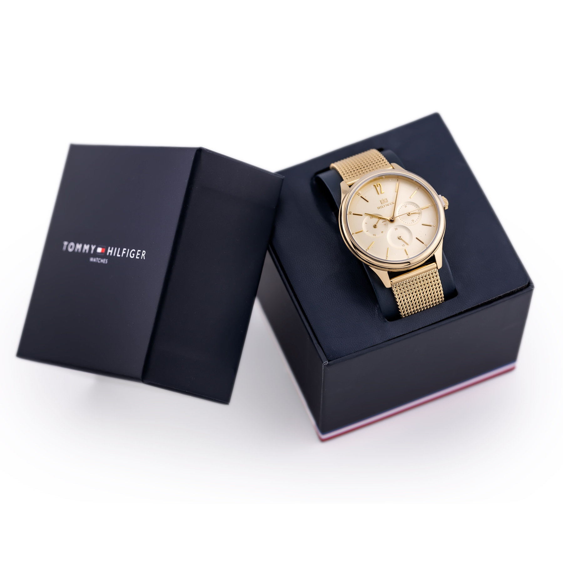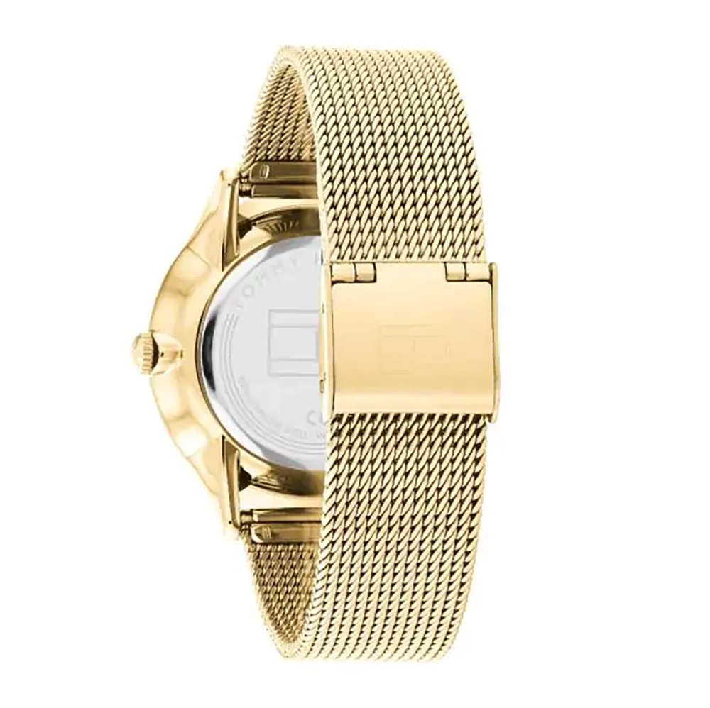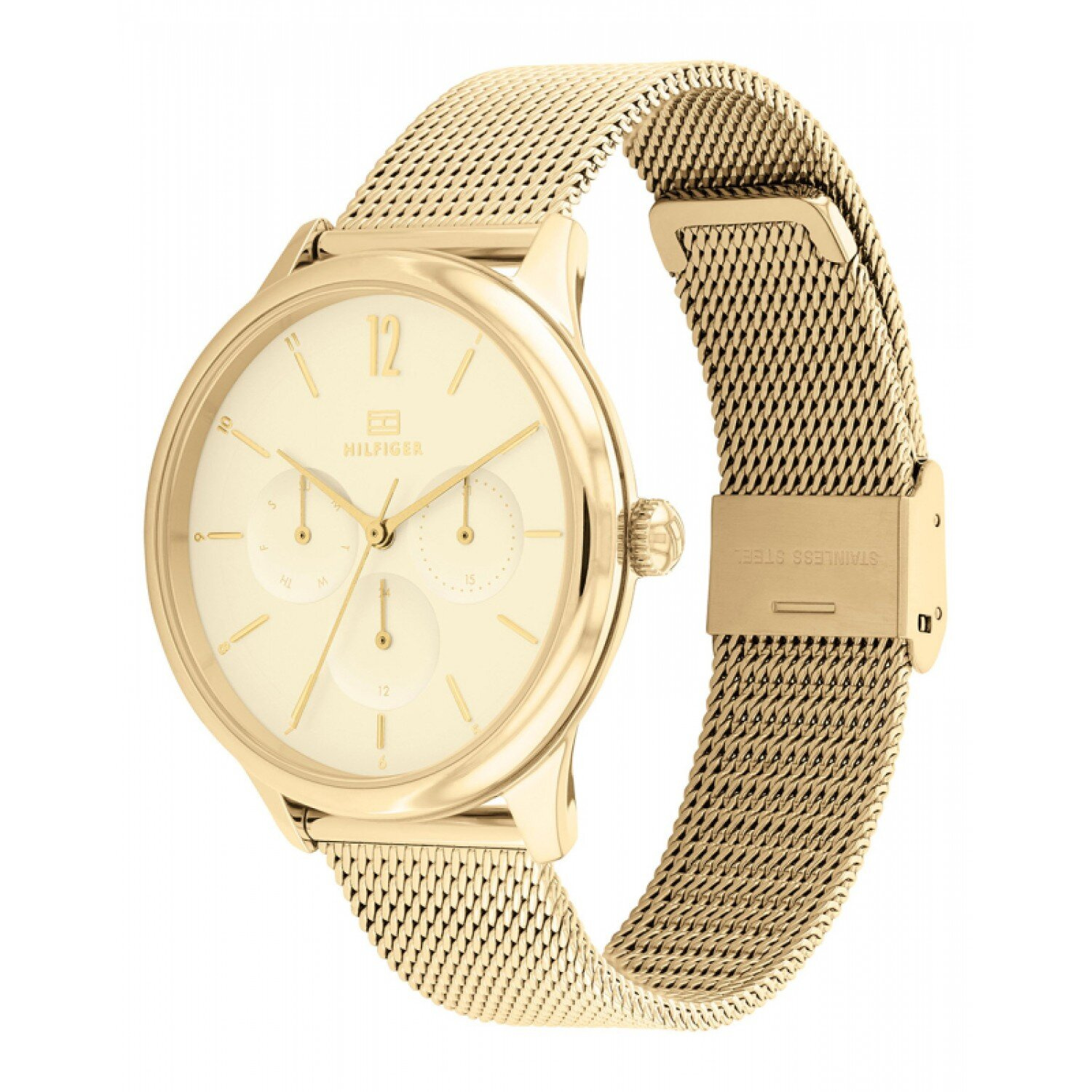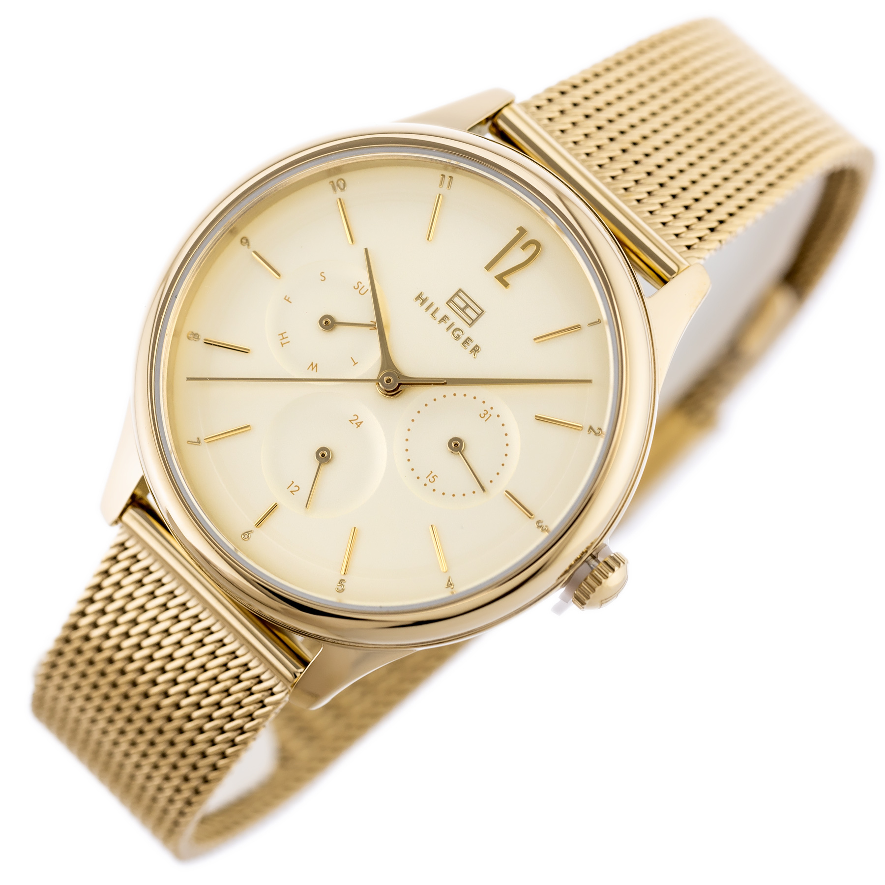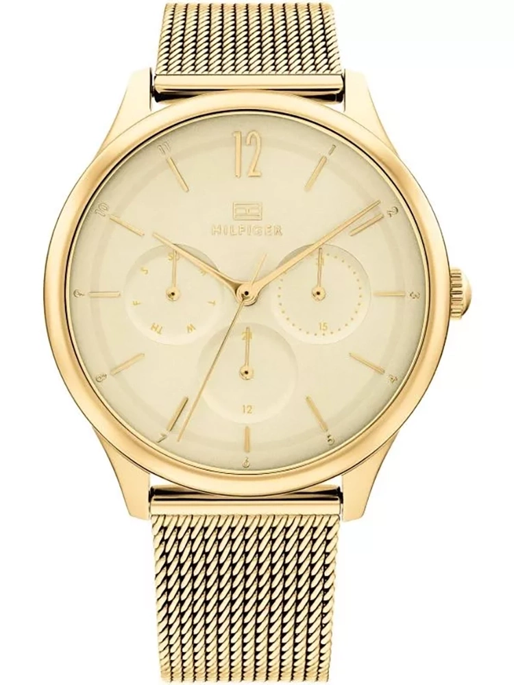 Zegarek Tommy Hilfiger 1782458 Layla to elegancki damski czasomierz zasilany niezawodnym kwarcowym mechanizmem. Koperta oraz bransoleta zostały wykonana ze stali szlachetnej, co gwarantuje jej wieloletnią odporność na zniszczenie w kolorze złotym. Całość uzupełnia czytelna złota tarcza.