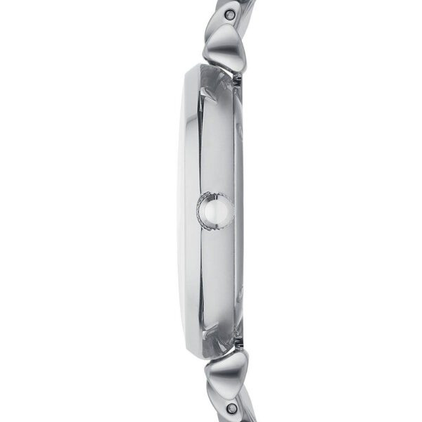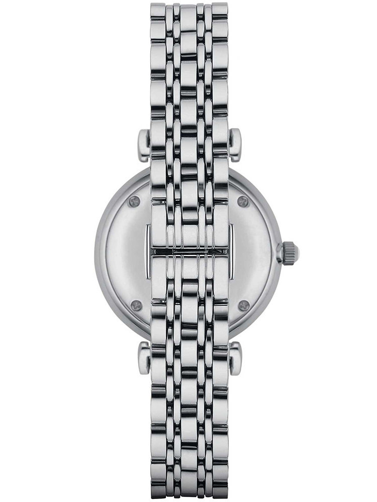 The Emporio Armani AR1908 watch from the Classic series is an elegant women's timepiece, ideal for both elegant attire and casual wear. The model features an accurate battery-powered quartz movement. The silver-colored dial with mother-of-pearl texture is protected by scratch-resistant mineral glass.