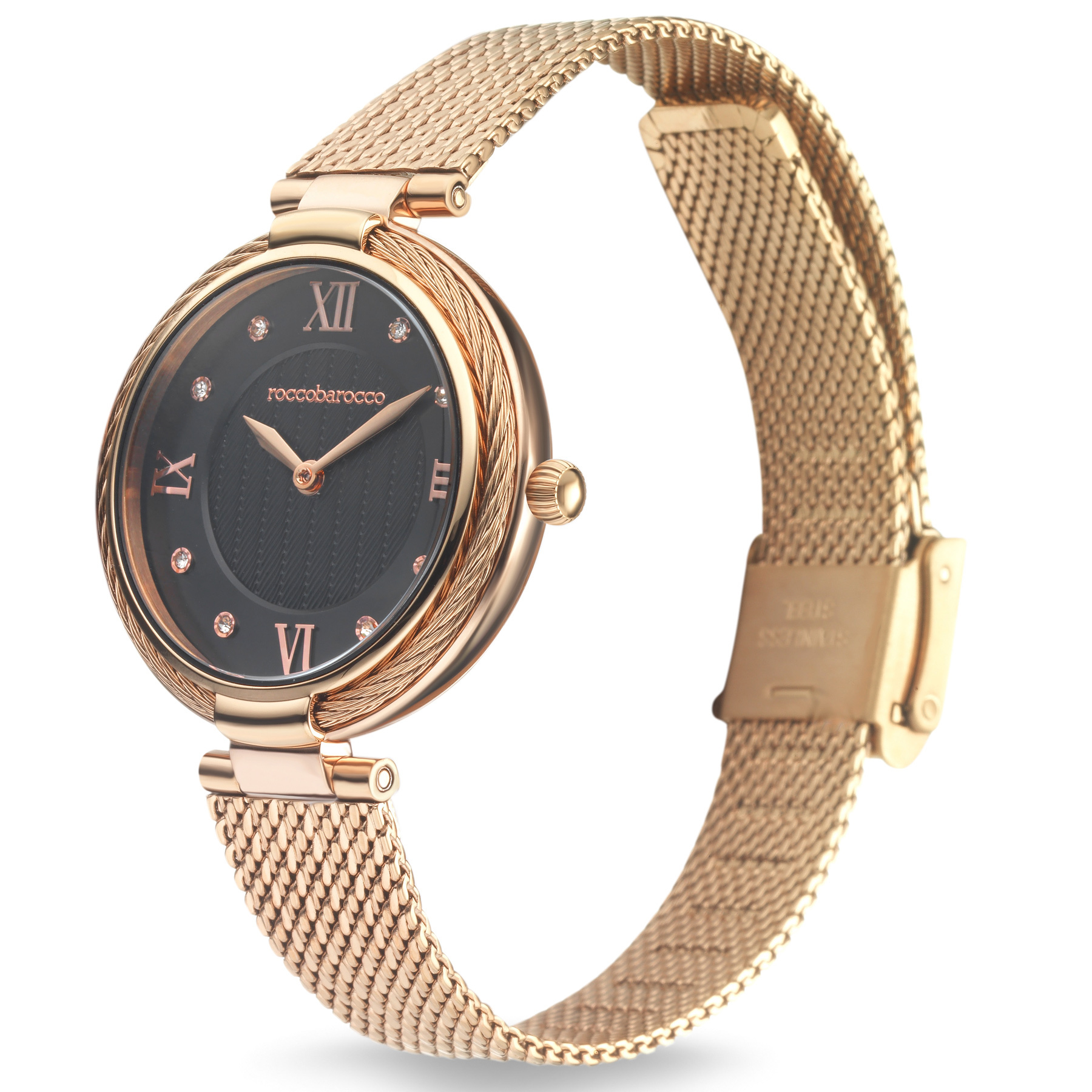 RoccoBarocco women's watch is not only a practical tool for measuring time, but also an elegant accessory that highlights the style and personality of the woman wearing it. This watch combines classic design with subtle designer details, creating a striking and unique product.
