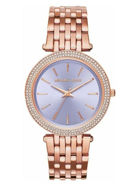 Zegarek Damski Michael Kors MK3400 to stylowy, klasyczny model dla każdej kobiety. Zegarek ten został wykonany w całości ze stali szlachetnej w kolorze różowe złoto z fioletową tarczą, co gwarantuje wieloletnią odporność na zniszczenie. Za niezawodne działanie urządzenia odpowiada dokładny mechanizm kwarcowy zasilany baterią.