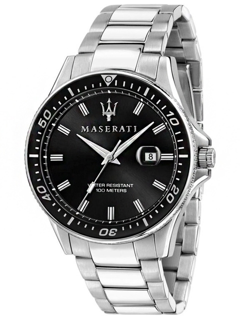 Zegarek Maserati R8853140002 Sfida to elegancki i nowoczesny zegarek dla wymagających i bezkompromisowych mężczyzn. Na czarnej tarczy zabezpieczonej mineralnym szkłem i otoczonej czarnym pierścieniem znajdziemy datownik wskazujący dzień miesiąca.