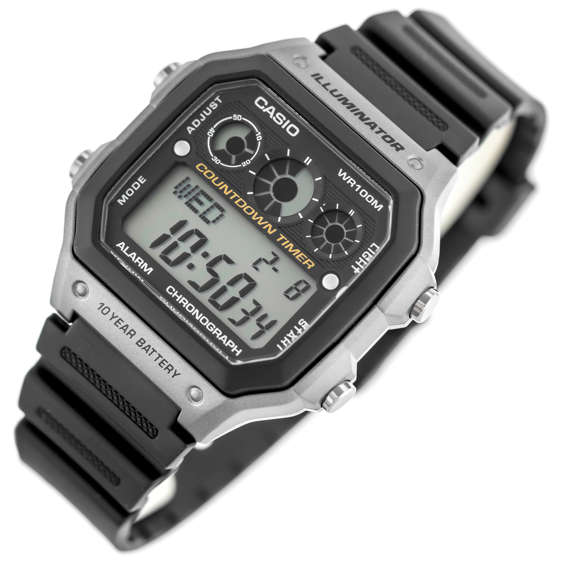 This model is characterized by exceptional durability, thanks to its water resistance of up to 100 meters (WR100), making it an ideal choice for both active people and those looking for a watch that is resistant to weather, rain or contact with water. Its multifunction LCD display allows you to easily read the time, date, as well as take advantage of a number of useful functions, such as a stopwatch, timer and alarm, which will find use during workouts or daily chores.