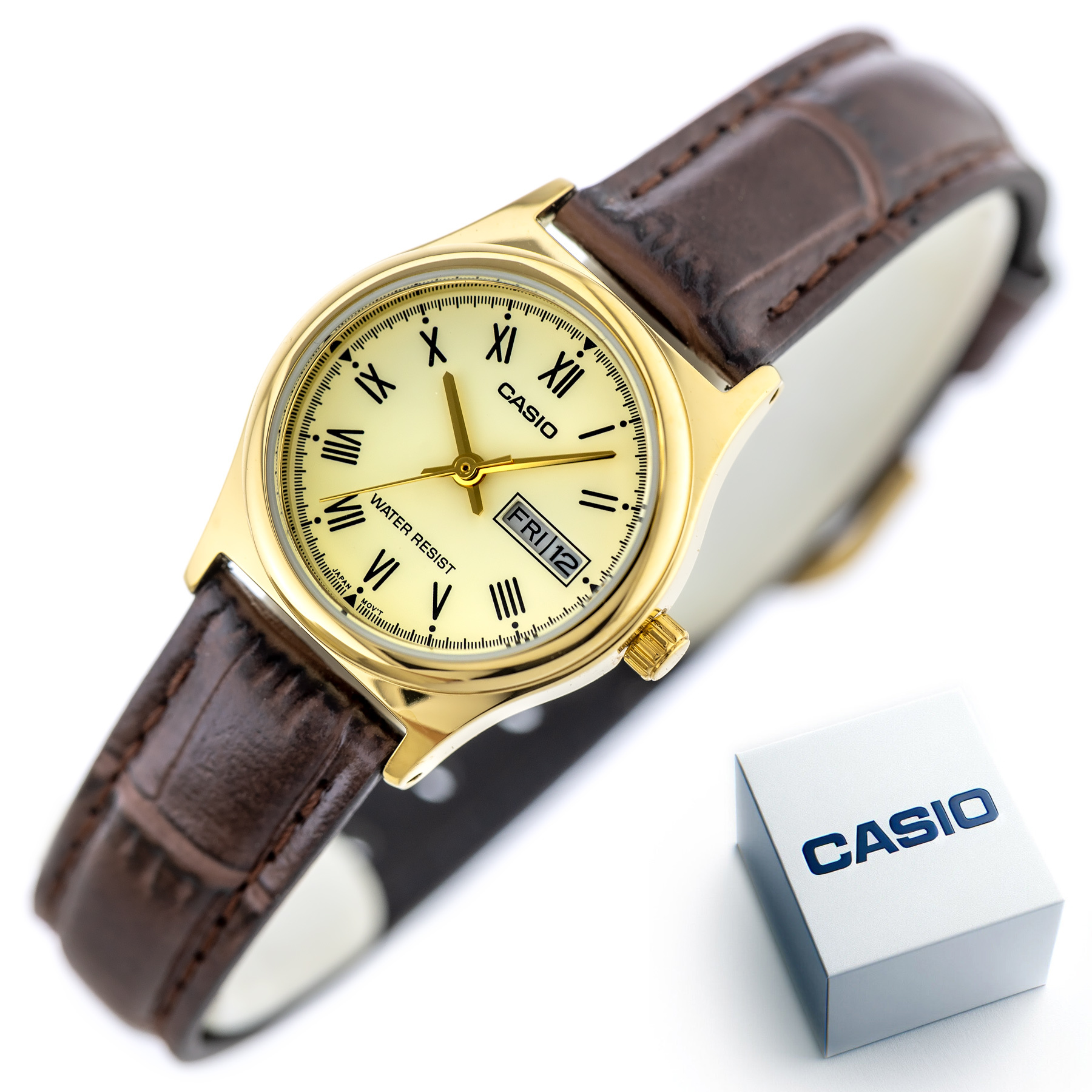 The Casio LTP-V006GL-9B is a model that will work well in many situations. Its reliable quartz movement guarantees accuracy and long-lasting use without the need for frequent battery changes. The watch is lightweight and comfortable, and the leather strap adapts to the shape of the wrist, ensuring comfort throughout the day's wear. Thanks to its water resistance, the watch is resistant to minor splashes, making it a practical choice for everyday wear.
