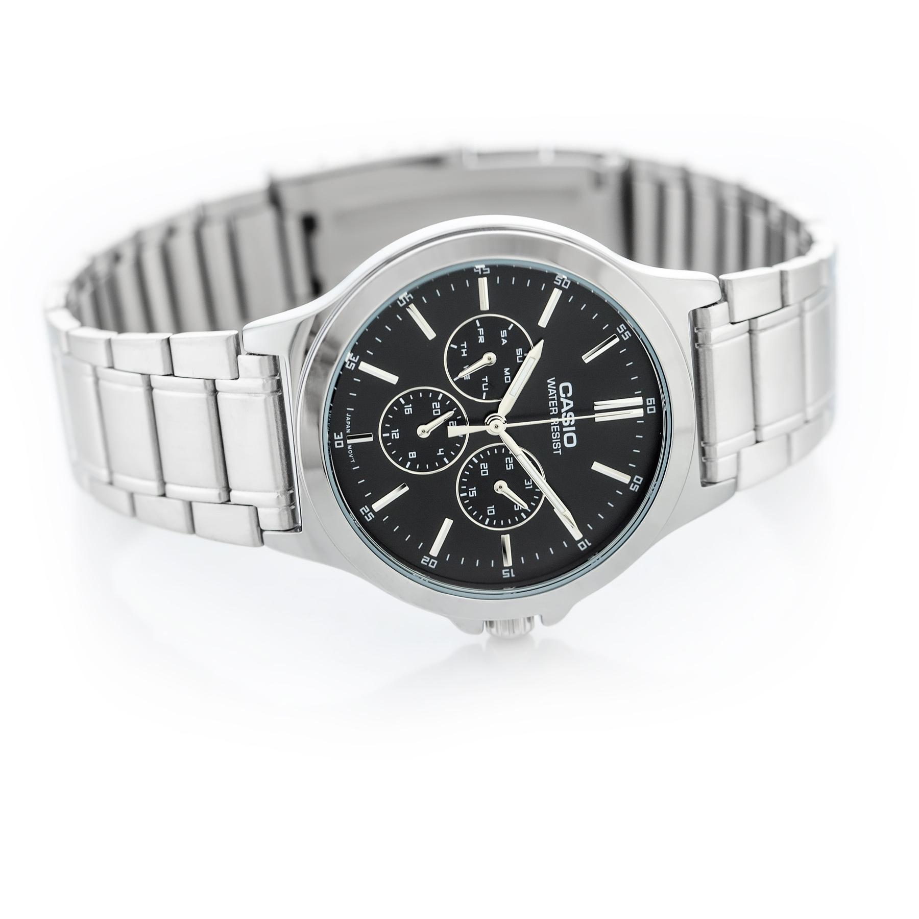 Casio MTP-V300D-1A is not only a watch, but also a reliable timekeeping tool. Equipped with a quartz movement, it provides remarkable precision indications. In addition, thanks to features such as a date stamp, you will always be sure of the current date.