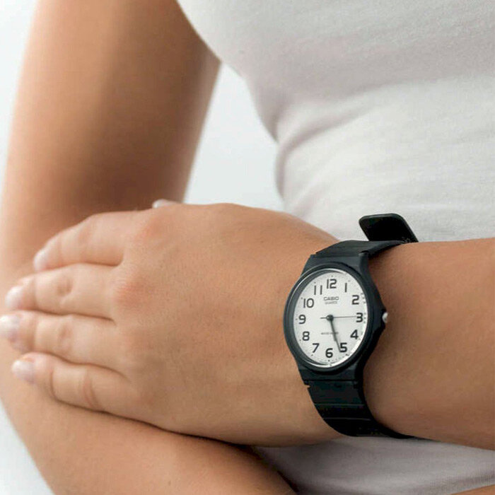 The Casio MW-59-7B unisex watch is an excellent choice for those looking for simplicity and functionality in one. Its timeless design, based on an elegant white dial, subtly contrasts with black hands and indexes, making the watch not only extremely stylish, but also highly legible in any conditions. Thanks to its minimalist design, the Casio MW-59-7B fits both everyday and more formal looks, adding a classic twist to them.