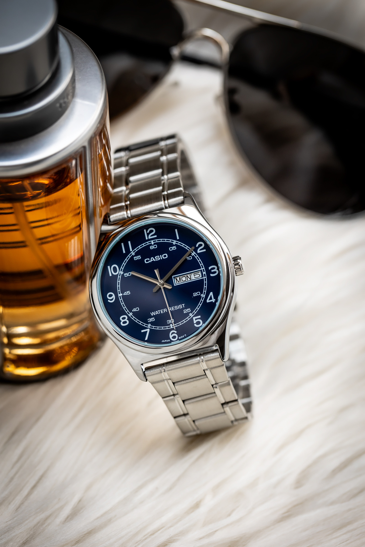 The Casio MTP-V006D-2B men's watch is an elegant and timeless timepiece that combines classic design with reliable functionality. Its subtle yet distinctive aesthetics make it an ideal choice for both everyday wear and special occasions. With a navy blue dial adorned with delicate silver indexes and silver-tone hands, the watch exudes simplicity yet elegance. The minimalist design makes the Casio MTP-V006D-2B match both a suit and more casual outfits, becoming the perfect complement to everyday outfits.