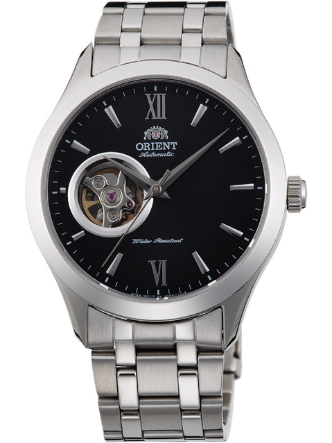 Czasomierz Orient FAG03001B0 to elegancki klasyczny męski zegarek do codziennego użytku, jak i na wyjątkowe okazji. Czytelną, czarną tarczę typu open heart przykryto sferycznym szkiełkiem mineralnym, dobrze chroniącym zarówno przed ewentualnymi zarysowaniami. Czasomierz działa w oparciu o niesłychanie dokładny japoński mechanizm z automatycznym naciągiem.